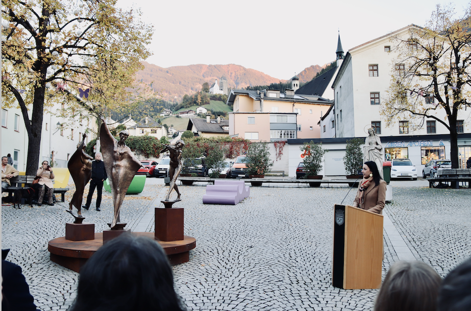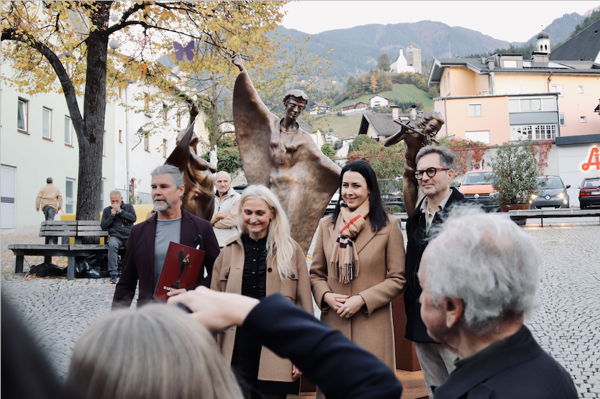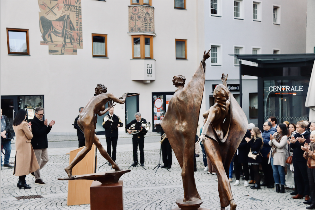 Am 16.10. durften wir bei großem Andrang die Ausstellung „Harmonie in Bronze“ von Horst Unterlechner zuerst auf dem Pfundplatz mit der Enthüllung von drei Figuren und anschließend im Toni-Knapp-Haus eröffnen.